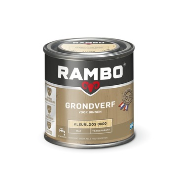 Rambo grondverf transparant mat kleurloos 750 ml is de perfecte eerste laag voor al het schilderwerk. Begin je verfklus goed met de transparante grondverf van Rambo. Het is vochtregulerend en bevordert de hechting van lak en vernis voor vloeren, parket, trappen en meubels. Gebruik deze grondverf voor het gronden en overgronden van nieuw hout en oude intacte verflagen. Geschikt voor alle houtsoorten. Het rendement van dit product is 12 m2 per liter.