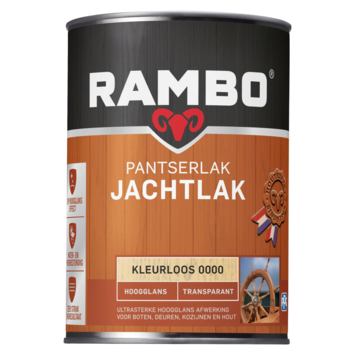 Rambo pantser jachtlak transparant hoogglans kleurloos 750 ml geeft jachten (boven de waterlijn), meubels, deuren en ander hout een prachtig langdurige bolle hoogglans. De lak is geschikt voor binnen en buiten en is extreem weer- en water bestendig. Rambo pantser jachtlak vloeit mooi uit en beschermt jaren met blijvende hoogglans. Het rendement van dit product is 12 m2 per liter.