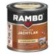 Rambo pantser jachtlak transparant hoogglans kleurloos 250 ml geeft jachten (boven de waterlijn), meubels, deuren en ander hout een prachtig langdurige bolle hoogglans. De lak is geschikt voor binnen en buiten en is extreem weer- en water bestendig. Rambo pantser jachtlak vloeit mooi uit en beschermt jaren met blijvende hoogglans. Het rendement van dit product is 12 m2 per liter.