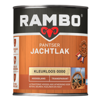 Rambo Pantser Jachtlak geeft jachten (boven de waterlijn), meubels, deuren en ander hout een prachtig langdurige bolle hoogglans. De lak is geschikt voor binnen en buiten en is extreem weer- en water bestendig. Rambo Pantser Jachtlak vloeit mooi uit en beschermt jaren met blijvende hoogglans. Het rendement van dit product is 17 m2 per liter.