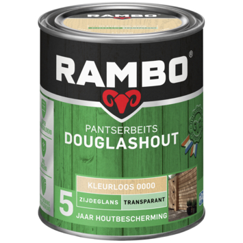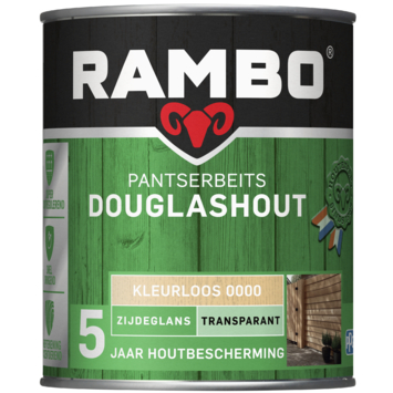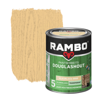 Met Rambo Pantserbeits Douglashout zijdeglans transparant kleurloos 750 ml behandel je douglashout dat buiten wordt toegepast, zoals schuttingen, pergola’s en overkappingen. De transparante buitenbeits beschermt het hout tot 5 jaar tegen regen, zon en wind. De watergedragen samenstelling is zeer geschikt voor gebruik op tuinhout.