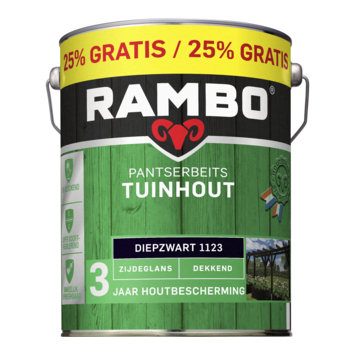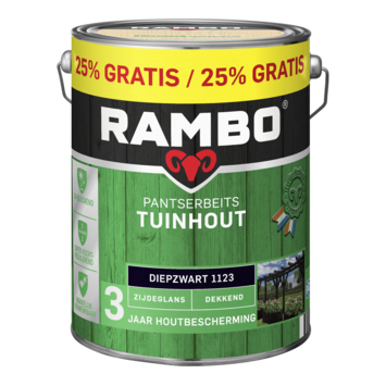 Met Rambo Pantserbeits Tuinhout zijdeglans dekkend diepzwart 5 liter behandel je houten onderdelen rondom het huis. De dekkende buitenbeits beschermt tuinhout zoals pergola’s, speeltoestellen, borders, carports, prieeltjes, schuren en plantenbakken tot 3 jaar tegen verschillende weersinvloeden. De beits is terpentinegedragen en geschikt voor buitengebruik.