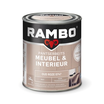 Rambo Pantserbeits Meubel & Interieur is een 1-pot-systeem beits voor het beschermen en verfraaien van meubels, deuren, kozijnen, lambriseringen en hout binnenshuis. De beits is gemakkelijk aan te brengen en is vocht- en vuilwerend en stoot- en krasvast. Afhankelijk van het gewenste effect in 1 laag klaar. Rambo Pantserbeits Meubel & Interieur is makkelijk verwerkbaar, geurarm en laat de houtnerf zichtbaar blijven. De beits is verkrijgbaar in 8 mooie vintage kleuren.