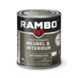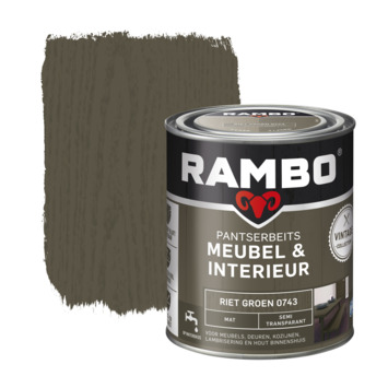 Rambo Pantserbeits Meubel & Interieur is een 1-pot-systeem beits voor het beschermen en verfraaien van meubels, deuren, kozijnen, lambriseringen en hout binnenshuis. De beits is gemakkelijk aan te brengen en is vocht- en vuilwerend en stoot- en krasvast. Afhankelijk van het gewenste effect in 1 laag klaar. Rambo Pantserbeits Meubel & Interieur is makkelijk verwerkbaar, geurarm en laat de houtnerf zichtbaar blijven. De beits is verkrijgbaar in 8 mooie vintage kleuren.