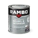 Rambo Pantserbeits Meubel & Interieur is een 1-pot-systeem beits voor het beschermen en verfraaien van meubels, deuren, kozijnen, lambriseringen en hout binnenshuis. De beits is gemakkelijk aan te brengen en is vocht- en vuilwerend en stoot- en krasvast. Afhankelijk van het gewenste effect in 1 laag klaar. Rambo Pantserbeits Meubel & Interieur is makkelijk verwerkbaar, geurarm en laat de houtnerf zichtbaar blijven. De beits is verkrijgbaar in 8 mooie vintage kleuren.