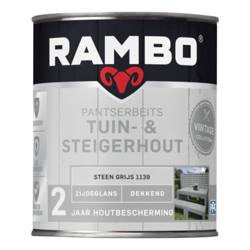 Rambo Pantserbeits Vintage tuin- en steigerhout zijdeglans dekkend steen grijs 750 ml