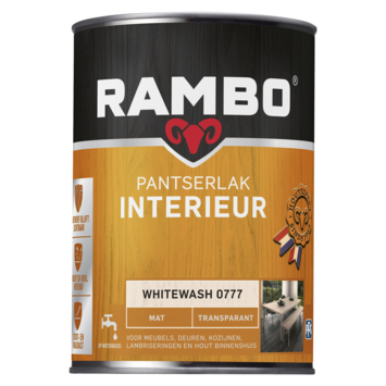 Rambo pantserlak interieur transparant mat whitewash 1,25 l is dankzij de gepatenteerde DB® technologie extra kras- en stootvast. Dit maakt dat deze lak bijzonder geschikt is voor schilderwerk dat tegen een stootje moet kunnen. Rambo Pantserlak Interieur is geurarm, vocht- en vuilwerend en geschikt voor meubels, lambriseringen, deuren, kozijnen en hout binnenshuis. Het rendement van dit product is 10 tot 14 m2 per liter.