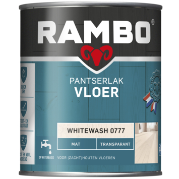 Rambo Pantserlak vloer mat transparant whitewash 750 ml beschermt (zacht)houten vloeren en behoudt tegelijk het natuurlijke houtkarakter. Deze door Rambo ontwikkelde transparante acrylvloerlak biedt extra bescherming. De lak droogt snel, is geurarm en vergeelt niet. Bovendien is het product zeer kras- en slijtvast. De lak vloeit mooi uit en zorgt jarenlang voor een matte uitstraling. Het rendement bedraagt 12 m² per liter.
