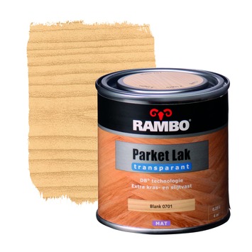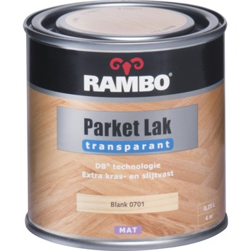 De Rambo parketlak waterbasis mat blank 250 ml is een lak speciaal voor parket en hardhouten vloeren. De lak is kras- en slijtvast en kan dus tegen een stootje. De lak heeft een blanke kleur en heeft een matte afwerking. Daarnaast is de lak op waterbasis makkelijk aan te brengen, droogt het snel en is het reukarm. Het blik bevat 250 milliliter lak, dit is genoeg voor een oppervlakte van zo'n 4 vierkante meter.