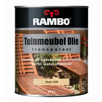 Deze olie wordt gebruikt voor het onderhouden van hardhouten tuinmeubelen. Rambo Tuinmeubel Olie transparant is niet geschikt voor toepassing op houtsoorten met inhoudsstoffen en harshoudend hout.