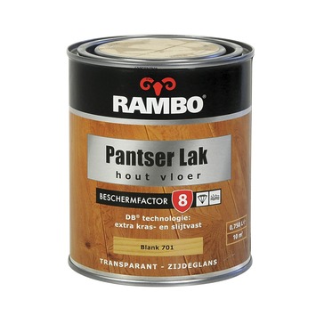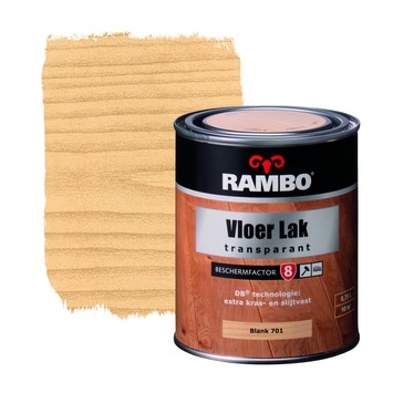 De Rambo vloerlak waterbasis blank transparant 750 ml is de beste bescherming voor jou vloeren, vloerdelen en betimmeringen. De lak beschermt de vloer tegen water, vuil en verwering. Daarnaast is de lak kras- en slijtvast en kan de lak dus tegen een stootje. De lak op waterbasis droogt snel, is reukarm en is makkelijk aan te brengen. Het blik bevat 750 milliliter transparante lak in de kleur blank, dit is genoeg voor een oppervlakte van zo'n 11 vierkante meter.