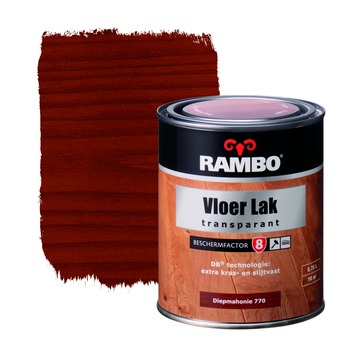 De Rambo vloerlak waterbasis diep mahonie transparant 750 ml is de beste bescherming voor jou vloeren, vloerdelen en betimmeringen. De lak beschermt de vloer tegen water, vuil en verwering. Daarnaast is de lak kras- en slijtvast en kan de lak dus tegen een stootje. De lak op waterbasis droogt snel, is reukarm en is makkelijk aan te brengen. Het blik bevat 750 milliliter transparante lak in de kleur diep mahonie, dit is genoeg voor een oppervlakte van zo'n 11 vierkante meter.