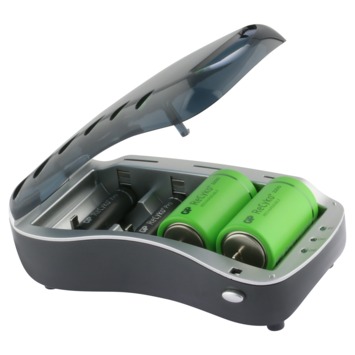 De ReCyko universele batterijoplader is geschikt voor het laden van 2 of 4 NiMH AAA, AA, C, D batterijen en 1 of 2 NiMH 9V batterijen. De lader is voorzien van 3 LED indicators en 2 individuele laadcircuits voor AAA, AA, C en D batterijen en 1 laadcircuit voor 9V batterijen 230V AC