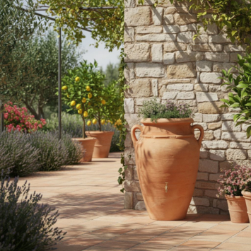 Als je het water uit de regenton gebruikt in de tuin, zorg je ervoor dat het propere water niet in het riool terecht komt. Als al het regenwater in het riool terecht komt, moet alles verwerkt worden. Door de klimaatverandering zal het steeds vaker voorkomen dat er tijdens een flinke regenbui zoveel water valt dat het riool dit niet meer kan verwerken. Extra wateropvang in de tuin, door bv. deze regenton, zorgt ervoor dat al dit water niet in het riool belandt en verwerkt hoeft te worden. Hierdoor worden veel kosten bespaard. Het regenwater is heel goed voor je planten omdat het nauwelijks kalk bevat en omdat het regenwater een andere temperatuur heeft, is dit ook beter voor je planten. Het regenwater kan ook gebruikt worden voor het wassen van de ramen of de auto. Omdat er geen kalk in het water zit, droogt het strak op en zie je geen vlekken of strepen. Bespaar op de waterrekening en gebruik het opgevangen regenwater. Kortom, met deze authentieke Griekse Amfoor terracotta 600 liter bewaar je op een nostalgische wijze regenwater waarmee je een goede aankoop doet, bespaar je op de kosten van water en draag je bij aan een beter milieu.