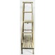 Rek met treden teak wit is 144 centimeter hoog, 150 centimeter breed en 25 centimeter diep.