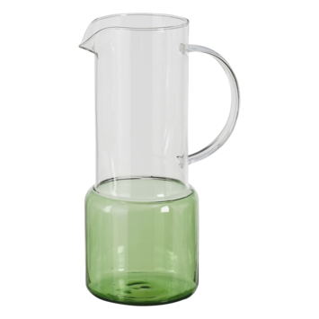 Deze Riga kan heeft een eenvoudige, strakke vorm en een subtiel groen accent aan de onderzijde. De kan is 25 cm hoog, heeft een diameter van 10,5 cm en een inhoud van 1,3 liter. Ideaal voor het serveren van water, sap of andere koude dranken. Na gebruik kan de kan eenvoudig in de vaatwasser. De kruik is goed te combineren met diverse tafeldecoraties, bijvoorbeeld op een houten dienblad of in combinatie met licht servies voor een rustige tafelopstelling. De kan is een praktische en veelzijdige toevoeging voor dagelijks gebruik en een verzorgde tafelsetting.