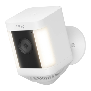 Wees altijd op de hoogte. Zelfs in het donker. De Ring Spotlight Camera Plus Battery Wit is een veelzijdige beveiligingscamera voor buiten die gewoon meer ziet. Leg elk detail vast bij zowat alle weersomstandigheden dankzij HD-video.