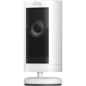 Ring Stick Up Cam Pro Battery Wit: Veelzijdige beveiligingscamera voor buiten met 1080p HDR-video, 3D-bewegingsdetectie en zicht vanuit vogelperspectief Professionele beveiliging, voor binnen of buiten. Voeg buitenshuis beveiliging toe met de veelzijdige Pro-versie van de beveiligingscamera voor buiten. Houd je terras in de gaten met 3D-bewegingsdetectie en nachtzicht in kleur, of houd op afstand een oogje in het zeil met HDR-video en verbeterde tweerichtingsspraak.