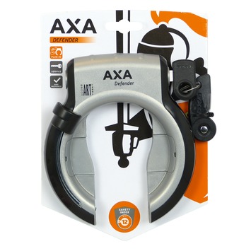 De AXA Defender is een hoogwaardig frameslot met een vernieuwend ontwerp waarbij het slot de mogelijkheid heeft een plugin-kabel of ketting in de zijkant van het slot te steken. Zo kun je uw fiets hee eenvoudig vastmaken aan een vast object als een lantaarnpaal of hek. Het Defender-ringslot heeft een anti-boorcilinder en een beugel gemaakt van gehard staal. De ergonomische bedieningsknop en de handige klapsleutel maken het slot erg eenvoudig in het gebruik. Je kunt het slot op verschillende manieren monteren. Standaard wordt het slot op de framebuis gemonteerd met de flexibele bevestigingsset. Je kunt er echter ook voor kiezen het slot te monteren met een topbout. Het ringslot wordt standaard met 2 sleutels geleverd. Als je graag een reservesleutel wilt bijbestellen dan kunt u dit heel gemakkelijk online doen via de sleutelservice.
