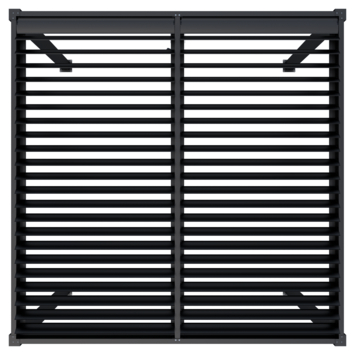 De Pergola Rodrigo is gemaakt van aluminium met een antracieten poedercoating. De afmeting is ca. 300x300 cm. Het voordeel van een aluminium pergola is dat deze onderhoudsvrij zijn in vergelijking met een houten pergola.