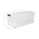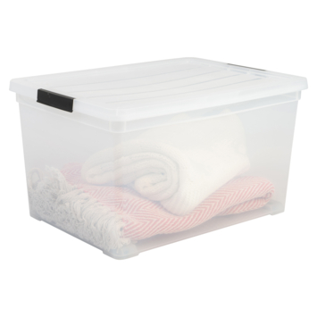 Deze kunststof opbergbox heeft een eenvoudig maar krachtig ontwerp. De stevige deksel zorgt voor een goede afsluiting en is voorzien van clipsluitingen, de box is nestbaar en stapelbaar. Het transparante materiaal maakt het gemakkelijk om te vinden wat u zoekt, omdat de inhoud snel kan worden geïdentificeerd. Deze box biedt u de mogelijkheid om alle huishoudelijke artikelen op te slaan zoals: speelgoed, kantoorartikelen, kleding en andere accessoires. Door de wieltjes aan de onderkant is deze box ook makkelijk te verplaatsen wanneer er zwaardere spullen in zitten