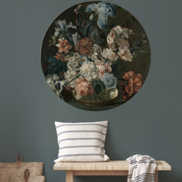 Geniet nu van een stukje Rijksmuseum bij je thuis met deze ronde muursticker van Dora flowers (dessin 119184). De diepe intense kleuren geven een unieke uitstraling aan jouw interieur. De wandcirkel is gemaakt van behang met een zelfklevende sticker laag en heeft een afmeting van 100 cm (diameter). Plak de sticker voor het beste resultaat op een schone, vlakke en droge ondergrond. De ronde muursticker is geschikt voor elke binnenruimte. Styling tip: plak meerdere ronde muurstickers bij elkaar en creëer een eye catcher als kunst statement aan jouw muur. Deze muursticker is alleen online en via de zuil in de bouwmarkt te bestellen.