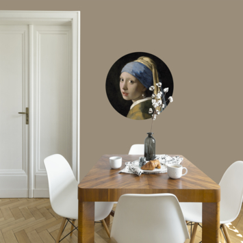 Geniet nu van een stukje Rijksmuseum bij je thuis met deze ronde muursticker van het Meisje met de parel (dessin 119175). De diepe intense kleuren geven een unieke uitstraling aan jouw interieur. De wandcirkel is gemaakt van behang met een zelfklevende sticker laag en heeft een afmeting van 70 cm (diameter). Plak de sticker voor het beste resultaat op een schone, vlakke en droge ondergrond. De ronde muursticker is geschikt voor elke binnenruimte. Styling tip: plak meerdere ronde muurstickers bij elkaar en creëer een eye catcher als kunst statement aan jouw muur. Deze muursticker is alleen online en via de zuil in de bouwmarkt te bestellen.