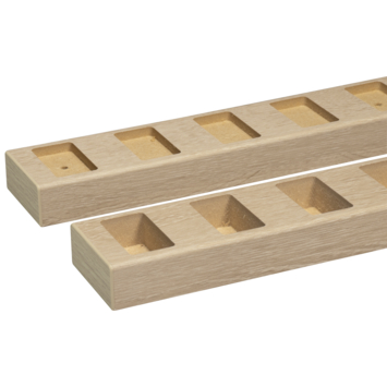 Met het Roomdivider profiel recht 90° natuur eiken 2 stuks leg je de fundering voor je eigen scheidingswand. Deze profielen vormen de boven- en onderrails waarin de spijlen worden geplaatst. Ze houden de lamellen netjes op één lijn en zorgen dat je wand stabiel blijft. De natuur eiken afwerking past perfect bij de bijhorende spijlen en geeft de roomdivider een warme, natuurlijke uitstraling die goed combineert met verschillende interieurstijlen.