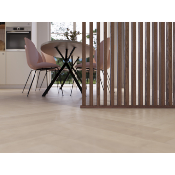 Een complete roomdivider bestaat uit drie onderdelen: de profielen, de spijlen en de montagetape. De profielen vormen het raamwerk van de wand en hebben uitsparingen waarin de spijlen precies passen. Zo krijg je een stabiele constructie zonder zichtbare bevestiging. Deze rechte uitvoering zorgt ervoor dat de lamellen haaks op de vloer staan, wat de scheidingswand een rustige en symmetrische look geeft.