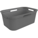 Deze Rotho Flex wasmand Albula in antraciet heeft een inhoud van 41 liter en is perfect voor het verzamelen van je was. Met zijn praktische handgrepen en stevige constructie is deze wasmand eenvoudig te tillen en te verplaatsen, zelfs als hij vol is. De ruime opening maakt het in- en uithalen van de was een fluitje van een cent. Gemaakt van kwalitatief hoogwaardig materiaal, is deze wasmand ook bestand tegen een stootje en blijft hij er langer als nieuw uitzien. Dankzij het strakke design past hij moeiteloos in elke ruimte, van de badkamer tot de slaapkamer. Deze handige wasmand is verkrijgbaar bij Karwei.