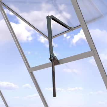 Altijd een gezond klimaat in je tuinkas, zonder dat je eraan hoeft te denken. De Royal Well automatische raamopener doet het werk voor je. Zodra de temperatuur in de kas stijgt, opent het dakraam vanzelf. Daalt de temperatuur weer, dan sluit het raam automatisch. Zo voorkom je oververhitting én kou. Ideaal als je niet altijd in de buurt bent of even weg bent. De opener werkt volledig zonder stroom. De ingebouwde cilinder reageert puur op temperatuurverschillen. De drukkracht van 6 kg is geschikt voor standaard enkele dakramen. Het stevige zwarte frame is universeel toepasbaar op bijna alle soorten kassen. Je kunt de cilinder na enkele jaren eenvoudig vervangen. Bij vorst? Haal ‘m even binnen of isoleer de cilinder om de raamopener goed te houden.
