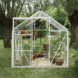 De Full Option Pakket Kate III van Royal Well is precies wat je nodig hebt voor je tuin! Deze stralend witte kweekkas biedt met een binnenoppervlakte van 6,0 m² voldoende ruimte voor al je planten en groenten. Het zadeldak geeft niet alleen een moderne uitstraling, maar zorgt ook voor een uitstekende afwatering. Met een nokhoogte van 215 cm kun je eenvoudig rechtop werken, wat het tuinieren nog prettiger maakt. De robuuste constructie van aluminium en 3 mm veiligheidsglas biedt optimale bescherming tegen allerlei weersomstandigheden. Het Full Options pakket bevat handige accessoires, waaronder een geïntegreerd schap en een automatische raamopener voor een ideale ventilatie. Met de twee ramen kan de lucht altijd goed circuleren. Een must-have voor iedere serieuze tuinier!