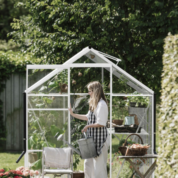 Met de Royal Well Kate IV kweekkas in het wit haal je een echte blikvanger in je tuin. Deze kas is perfect voor zowel de beginnende als ervaren kweker die goed wil presteren. De kas heeft een binnenoppervlakte van 7,16 m², ideaal voor het laten groeien van al je favoriete planten en groenten. Het veiligheidsglas van 3 mm dik is niet alleen veilig, maar zorgt ook voor een uitstekende lichtdoorlatendheid. Dankzij de twee dakramen kun je eenvoudig ventileren, wat essentieel is voor een gezonde groei. De nokhoogte van 215 cm biedt je de ruimte om comfortabel te werken. De elegante matte afwerking in het wit geeft een moderne uitstraling aan je tuin. Met de geïntegreerde fundering stap je gemakkelijk de kas binnen, en vergeet niet om bij onverharde grond de losse funderingankers mee te bestellen. Kortom, de Kate IV is de perfecte keuze voor iedereen die wil genieten van het kweken in een stijlvolle en functionele omgeving!