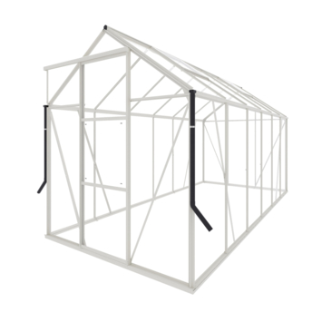 Met de Royal Well Kate IV kweekkas in het wit haal je een echte aanwinst voor je tuin in huis! De kas biedt een ruime binnenoppervlakte van 7,16 m², perfect voor het kweken van een breed scala aan planten. Gemaakt van stevig aluminium en veiligheidsglas, biedt deze kas zowel bescherming voor je gewassen als een duurzame bouw. Het zadeldak en de schuifdeur zorgen voor een moderne uitstraling en een praktische toegang tot je kweekruimte. De geïntegreerde fundering maakt de opzet eenvoudig, en als je de kas op onverharde grond plaatst, kun je extra funderingankers toevoegen voor extra stabiliteit. Dankzij de dakgoten met regenpijpen kun je regenwater opvangen en hergebruiken voor je planten. Het Full Options pakket bevat alles wat je nodig hebt om meteen aan de slag te gaan, inclusief schappen, tomatenspiralen en andere handige accessoires. De Kate IV is daarmee de ideale kas voor iedereen die met plezier wil tuinieren!