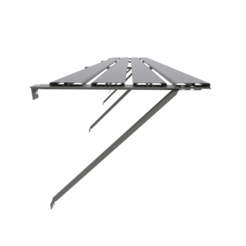 Met de groengrijze kweektafel voor tuinkas Kate I voeg je een praktische en stijlvolle toevoeging toe aan je kas. Deze tafel biedt de ideale werkhoogte voor al je tuinactiviteiten, zoals zaaien, verpotten en water geven. Dankzij de diepte van 42,5 cm past hij in vrijwel elke kas en helpt hij je de beschikbare ruimte optimaal te benutten. De stevige constructie met vier leggers, dragers en schoren zorgt ervoor dat al je materialen en gereedschap netjes binnen handbereik blijven. Extra fijn: de hoogte is instelbaar, zodat je altijd in een comfortabele houding kunt werken. Of je nu een ervaren tuinier bent of net begint, deze kweektafel maakt tuinieren efficiënter én leuker!