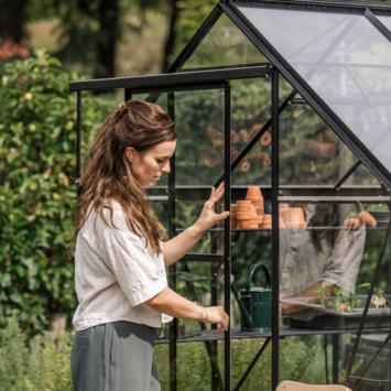De Royal Well Mary III kweekkas in zwart is de perfecte oplossing voor iedereen die serieus aan de slag wil met zijn of haar tuin. Met een binnenoppervlakte van 7,46 m² heb je volop ruimte om al je favoriete planten te laten groeien. Deze kas is voorzien van een elegant zadeldak en een handige schuifdeur met haakslot, wat niet alleen mooi oogt, maar ook praktisch is. Het 3 mm dikke veiligheidsglas is stevig en goed geïsoleerd, waardoor je planten beschermd zijn tegen de elementen. En met de meegeleverde accessoires, zoals een geïntegreerd schap, vier pothouders en een automatische raamopener, ben je direct klaar om te beginnen met kweken. Het mooie aan deze kas is dat hij niet alleen functioneel is, maar ook een stijlvol element in je tuin vormt. Dankzij de stevige fundering is deze kas geschikt voor elke ondergrond, of je nu op gras of op een verharde ondergrond werkt. Kortom, de Royal Well Mary III is de ideale kweekplek voor zowel beginners als ervaren tuinders!