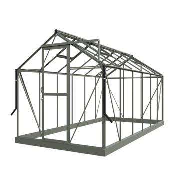De Royal Well Mary IV is een echte blikvanger in je tuin! Deze kweekkas in een stijlvolle groen/grijze tint biedt niet alleen een ideale plek om je planten te laten groeien, maar is ook een plek waar je zelf kunt ontspannen en genieten van de natuur. Met een binnenoppervlakte van 8,91 m² heb je genoeg ruimte om aan de slag te gaan met je favoriete planten. Het veiligheidsglas van 3 mm zorgt voor een optimale bescherming, terwijl het aluminium frame stevig en lichtgewicht is. Deze kas heeft een zadeldak, wat niet alleen mooi staat, maar ook bijdraagt aan een goede ventilatie. De automatische raamopener zorgt ervoor dat de temperatuur altijd ideaal blijft voor je planten. Dit full option pakket bevat alles wat je nodig hebt: een geïntegreerd schap, een tafel, pothouders, containers en zelfs zwarte tomatenspiralen! Je kunt meteen aan de slag zonder dat je extra accessoires hoeft aan te schaffen. De stevige fundering maakt het mogelijk om de kas op verschillende ondergronden te plaatsen, en met een nokhoogte van maar liefst 245 cm voelt het nooit benauwd aan. Kortom, met de Royal Well Mary IV haal je niet alleen een praktische, maar ook een stijlvolle toevoeging voor je tuin in huis!