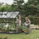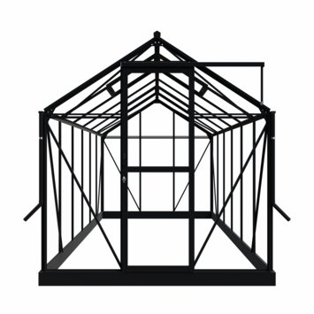 Met de Royal Well Mary IV kweekkas in zwart creëer je een stijlvolle en praktische kweekruimte in je tuin. Met een ruime binnenoppervlakte van 8,91 m² heb je genoeg plek voor het kweken van allerlei groenten en bloemen. Het strakke ontwerp met een zadeldak en schuifdeur voegt niet alleen charme toe aan je tuin, maar biedt ook extra functionaliteit. De 3 mm dikke veiligheidsglazen wanden en het duurzame aluminium frame zorgen voor een stevige en veilige kas. De automatische raamopener houdt de temperatuur optimaal, zodat je planten altijd in de beste omstandigheden kunnen groeien. Dankzij de meegeleverde fundering staat de kas stevig, zowel op zachte als verharde ondergronden. Kortom, met deze kweekkas haal je niet alleen een functioneel hulpmiddel in huis, maar ook een stijlvolle toevoeging voor je tuin!