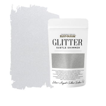 Maak je eigen glitterverf met Rust-Oleum Glitter Subtle Shimmer Silver Pouch. Deze glittertoevoeging geeft je een subtiele glans aan muren, meubels en woonaccessoires. Eenmaal toegevoegd vangen de kleine metaalglitterdeeltjes het licht op en glinsteren. Perfect voor een vleugje glamour. Met Rust-Oleum Glitter Subtle Shimmer Silver Pouch maak je jouw schilderwerk wel heel uniek! Ook verkrijbaar in de kleuren Gold en Rose. Dit zakje glitters van 70 gram is voldoende voor 2,5-3 liter verdunde muurverf of muurvernis op waterbasis. Voeg de glitters toe in de eindlaag van de verf. Goed roeren. Wrijf na volledige droging met een zachte doek over de glitterlaag voor sterkere glitters. De lichtinval is van invloed op het schittereffect.
