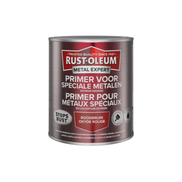 Deze Rust-Oleum primer voor speciale metalen is extreem dekkend. Geschikt voor gegalvasineerd metaal, aluminium, messing, chroom en koper. In de kleur roodbruin.