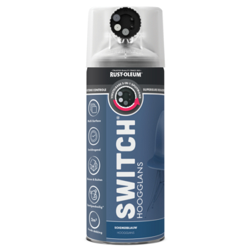 De Rust-Oleum Switch spuitlak hoogglans schemerblauw 400 ml maakt het makkelijker om netjes te werken. Je kiest zelf uit vijf verschillende spuitstanden: van smal en precies tot breed en krachtig. Ook kun je wisselen tussen een horizontale of verticale straal. Dankzij die opties pas je de spuitvorm aan op jouw klus. Je draait simpelweg aan de kop en bent direct klaar voor een andere toepassing. Zo heb je altijd controle over hoe en waar de lak terechtkomt.