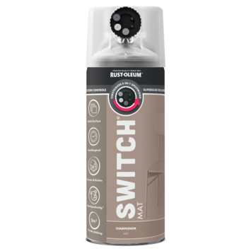 De Rust-Oleum Switch spuitlak mat champignon 400 ml maakt het makkelijker om netjes te werken. Je kiest zelf uit vijf verschillende spuitstanden: van smal en precies tot breed en krachtig. Ook kun je wisselen tussen een horizontale of verticale straal. Dankzij die opties pas je de spuitvorm aan op jouw klus. Je draait simpelweg aan de kop en bent direct klaar voor een andere toepassing. Zo heb je altijd controle over hoe en waar de lak terechtkomt.