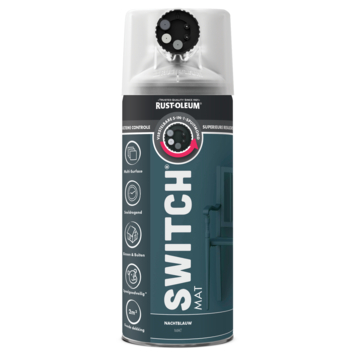 De Rust-Oleum Switch spuitlak mat nachtblauw 400 ml maakt het makkelijker om netjes te werken. Je kiest zelf uit vijf verschillende spuitstanden: van smal en precies tot breed en krachtig. Ook kun je wisselen tussen een horizontale of verticale straal. Dankzij die opties pas je de spuitvorm aan op jouw klus. Je draait simpelweg aan de kop en bent direct klaar voor een andere toepassing. Zo heb je altijd controle over hoe en waar de lak terechtkomt.