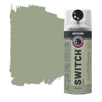 De Rust-Oleum Switch spuitlak mat vintage groen 400 ml maakt het makkelijker om netjes te werken. Je kiest zelf uit vijf verschillende spuitstanden: van smal en precies tot breed en krachtig. Ook kun je wisselen tussen een horizontale of verticale straal. Dankzij die opties pas je de spuitvorm aan op jouw klus. Je draait simpelweg aan de kop en bent direct klaar voor een andere toepassing. Zo heb je altijd controle over hoe en waar de lak terechtkomt.