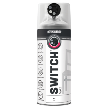 De Rust-Oleum Switch spuitlak mat wit 400 ml maakt het makkelijker om netjes te werken. Je kiest zelf uit vijf verschillende spuitstanden: van smal en precies tot breed en krachtig. Ook kun je wisselen tussen een horizontale of verticale straal. Dankzij die opties pas je de spuitvorm aan op jouw klus. Je draait simpelweg aan de kop en bent direct klaar voor een andere toepassing. Zo heb je altijd controle over hoe en waar de lak terechtkomt.