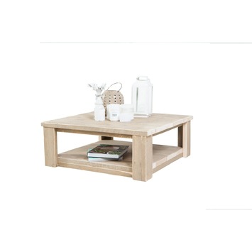 De salontafel met onderblad steigerhout 60 cm is een perfect middelpunt van een loungeset. Met name de loungeset Milano en loungebank Palma passen goed bij deze salontafel. Het is een stabiele en stevige steigerhouten salontafel. Met het onderblad biedt deze salontafel extra ruimte om spullen neer te leggen, zoals tijdschriften en boeken. Zo houd je op het bovenblad meer ruimte over voor bijvoorbeeld decoratie-accessoires en lekkere hapjes en drankjes. De salontafel met onderblad steigerhout 60 cm maakt jouw loungeset compleet. Salontafel met onderblad steigerhout 60 cm is 60 centimeter lang, 60 centimeter breed en 30 centimeter hoog.