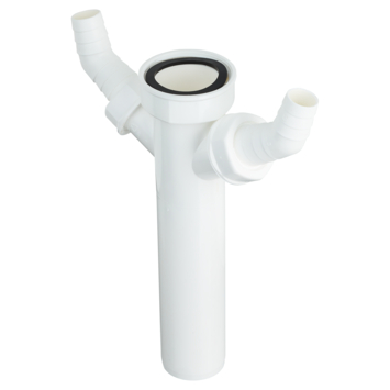 Goede afvoerpijp met 2 aansluitingen voor vaatwasser of wasmachine of overstort van inlaatventiel.