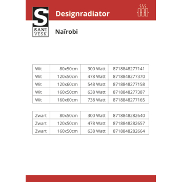 De Sanivesk Nairobi paneelradiator van 120 x 60 cm in wit combineert een innovatief ontwerp met krachtige warmte, ideaal voor badkamers en woonruimtes. Met een vermogen van 548 watt verwarmt deze radiator snel en gelijkmatig. Het slanke en strakke design past moeiteloos in zowel moderne als klassieke interieurs. Gemaakt van hoogwaardig staal, biedt hij degelijke kwaliteit en lange levensduur. De radiator wordt geleverd met bevestigingsmateriaal voor een eenvoudige montage. Zo geniet je van een stijlvolle warmtebron die comfort en elegantie samenbrengt.
