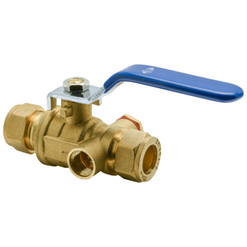 Deze Sanivesk Kogelkraan Knel + Aftap 15x15mm is geschikt voor het tijdelijk afsluiten van de waterleiding op plaatselijk niveau. De afsluiting van deze stopkraan vindt plaats door een chromede kogel, opgesloten in een afdichting van zuiver teflon. De met kunststof beklede hendel zorgt voor een eenvoudige bediening. Op de stopkraan is een mogelijkheid aanwezig een aftapper te plaatsen om het resterende water in de leiding af te tappen.
