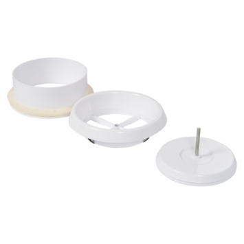 Het witte kunststof luchtventiel met een diameter van 150 mm voert vochtige of vuile lucht af. Het ventiel is met name geschikt voor het afvoeren van lucht via een centrale mechanische ventilatie. Met de aansluitbus monteert u het ventiel eenvoudig in bijvoorbeeld gipsplafond of systeemplafond. Dankzij de witte kleur valt het luchtventiel niet zo op bij een witte muur of plafond. Het luchtventiel is eenvoudig te verwijderen en schoon te maken. De mate van luchtafvoer stelt u makkelijk zelf traploos in door het centrale punt in het ventiel te draaien. De klemmetjes houden het ventiel stevig in de aansluitbus, maar kunt u ook direct in het gat klemmen.
